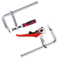 Tameson propose une large gamme de serre-joints à vis avec differentes tailles de mandrins et longueurs de mâchoires. Les pinces à coller, petites et grandes, sont equipees d'une pince à vis manuelle que l'on tourne pour fixer l'objet. Tameson propose egalement une selection de colliers de serrage à vis à serrage rapide avec un système de serrage à levier, qui sont ideaux pour être utilises d'une seule main et peuvent être regles rapidement et avec precision pour obtenir la taille de serrage correcte. D'autres types de pinces sont egalement disponibles, notamment les pinces à vis compactes, ideales pour maintenir des objets dans des espaces très restreints.