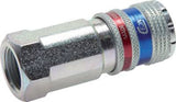 Consultez la large gamme d'accouplements de securite ISO 4414/EN 983 de Tameson. Les raccords de securite libèrent la pression d'air en aval du côte du clapet de manière sûre et contrôlee avant de desaccoupler complètement le clapet. Cela permet d'eviter un dangereux effet de fouet qui pourrait causer des dommages à l'homme et à la machine. Un raccord pneumatique est utilise pour connecter rapidement des outils pneumatiques à une conduite d'air comprime. Le coupleur se compose de deux parties : la douille (partie femelle) et la fiche ou le mamelon (partie mâle). Lorsqu'il est deconnecte, le raccord se ferme automatiquement pour maintenir la pression de la ligne. Ils sont souvent appeles raccords d'air comprime, raccords de compresseurs, raccords pneumatiques, raccords de tuyaux d'air, etc.