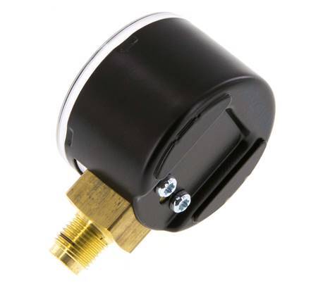 Manomètre MW01640SV-18 a un point de connexion situé sous le manomètre et mesure pression dans la gamme de 0 à 16 bars (0..232 psi). La division de l'échelle est 0 - 0,5 et la classe de précision de mesure 1,6 (± 1,6 %). Le boîtier de jauge en acier a un diamètre de 40 mm. Le système de mesure, l'indicateur et la connexion G 1/8 pouce sont en laiton.