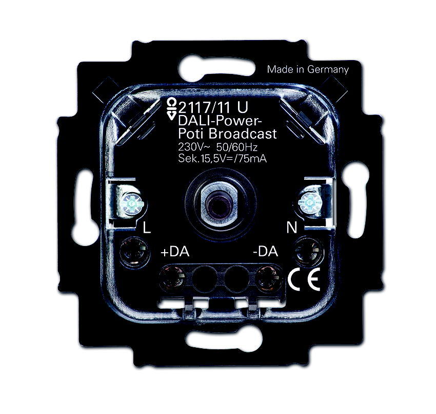 Abb Busch-Jaeger potentiomètre vr système de commande d'éclairage, mode de fonctionnement rotatif/bouton-poussoir, fréquence 50 - 60Hz, mémoire de valeur lumineuse, encastré, nom. (mesure) 0,075A, tension nominale 230V, largeur de l'appareillage 71mm, profondeur de l'appareillage 50mm, hauteur de l'appareillage 71mm.