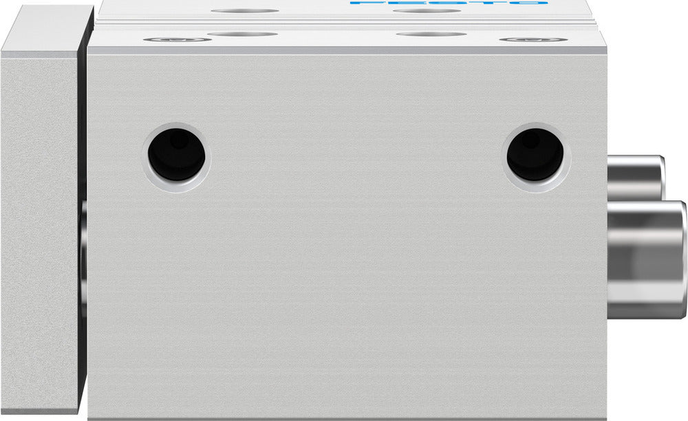 Le vérin de guidage DFM combine un guidage glissant et un vérin double effet dans un modèle compact. Avec un diamètre de piston de 63 mm et une course de 50 mm, il délivre 1870 N de force à 6 bar. L'unité dispose d'un amortissement élastique aux deux extrémités et est compatible avec des capteurs de proximité pour la détection de position. Sa construction robuste et son guidage précis le rendent adapté aux applications nécessitant une haute résistance aux couples et aux forces latérales, telles que le serrage, le levage et les tâches d'arrêt.