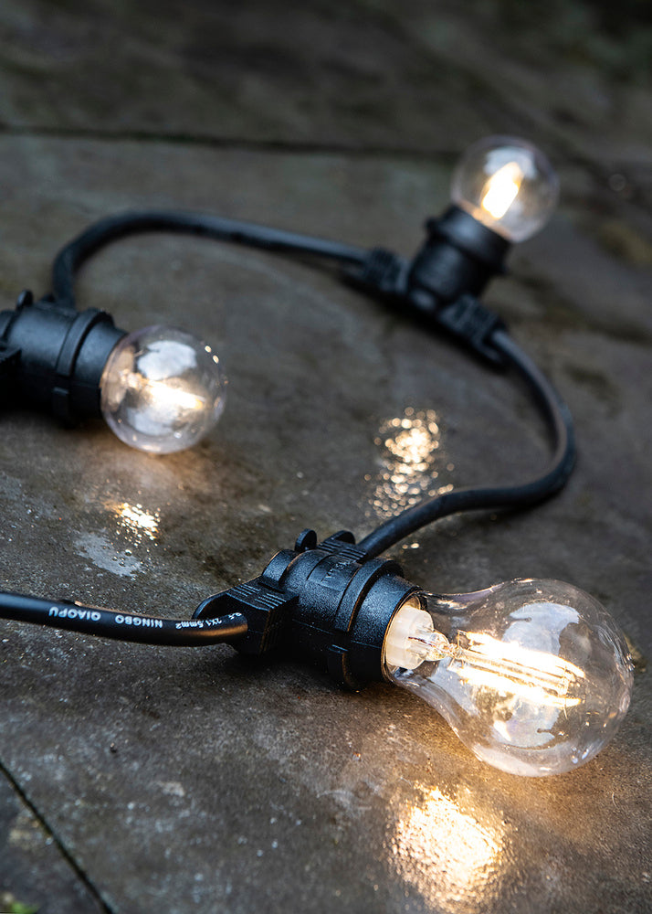 Ampoule LED de qualité professionnelle avec construction en polycarbonate incassable, conçue pour les environnements de service alimentaire commerciaux et les événements en plein air. Fournit 180 lumens à 2700K blanc chaud, avec une classification IP44 lorsqu'elle est correctement fixée. Fonctionnement économe en énergie de 2W remplace les ampoules traditionnelles de 19W, avec une distribution lumineuse de 320°. Idéal pour les guirlandes lumineuses et les zones nécessitant une conformité de sécurité.