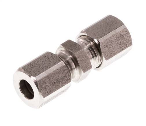 Ce raccord droit à vis en acier inoxydable est conçu avec deux points de connexion de la bague coupante. Le raccord 1 est une bague coupante de 6 mm. Le raccord 2 est une bague coupante de 6 mm. Convient pour des températures de -60 à 400 °C (-76 à 752 °F). Pression maximale de 100 bar (1450 psi). Classé pour une classe de charge LL (très légère). Il est fabriqué conformément à la norme DIN EN ISO 8434-1 (DIN 2353).