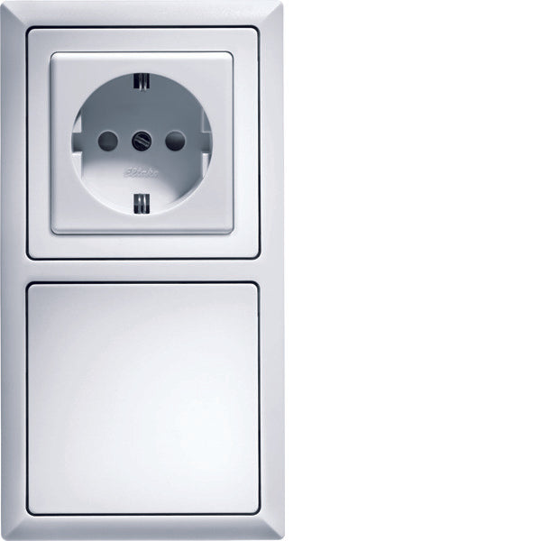 Cadre de finition Eltako, plastique, blanc, (lxhxp) 80x151x12mm, surface brillante, sens de montage vertical, 2 unités, 2 unités horizontales, 2 unités verticales, 2 inserts de commutation, type de protection (IP) autre, design concis, sans halogène, largeur d'encastrement 80mm.