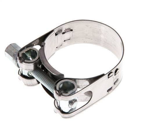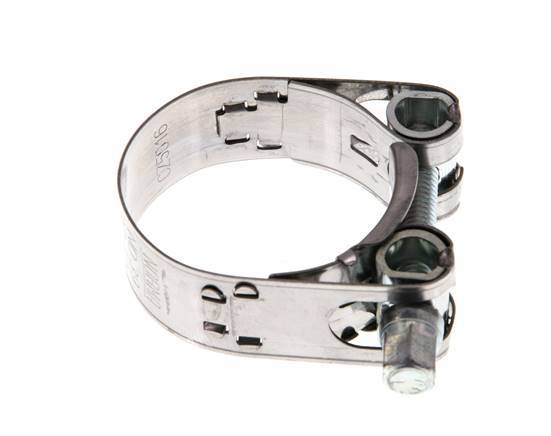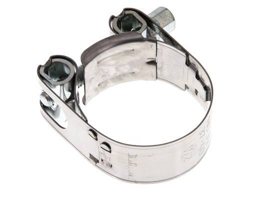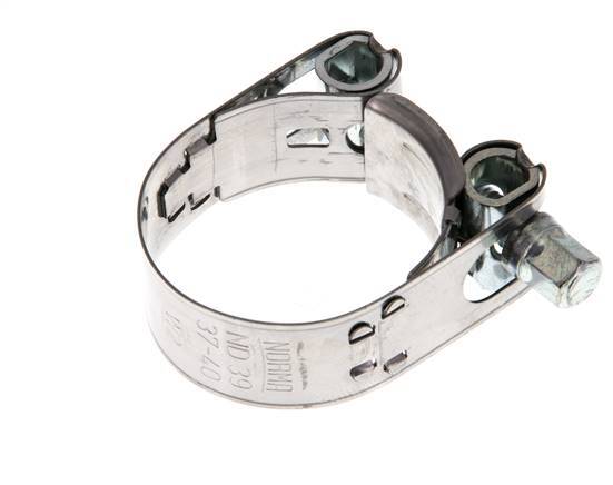 Collier de serrage Norma avec une portée réglable de 37 - 40 mm. Il a une largeur de bande de 18 mm. Le boîtier est en acier inoxydable 430.il est équipé d'un boulon en T, qui se serre et se desserre en tournant le boulon.il est équipé d'un fil métallique, qui se serre et se desserre avec la vis.