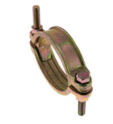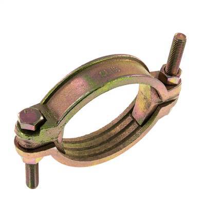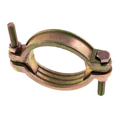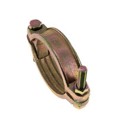 Collier de serrage pour les raccords à griffes des compresseurs (DIN 20039A). Fabriqué en fonte malléable. Convient pour un diamètre de tuyau compris entre 94 et 115 mm. Le collier de serrage se compose de deux parties qui sont serrées autour du tuyau à l'aide de deux boulons. Ces colliers de serrage sont conçus pour être utilisés avec les raccords à griffes des compresseurs.