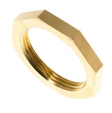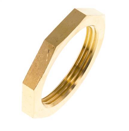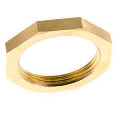 This lock nut is made of brass and has G threads. A locking nut resists loosening from vibrations and torque.