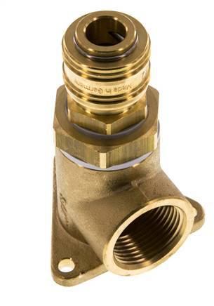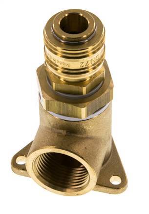 Manchon d'accouplement à air en laiton DN 7.2 (Euro) avec filetage femelle G 3/4 pouce. Conception de montage mural. La plage de pression de fonctionnement est comprise entre 0 (convient pour les vides grossiers) et 35 bar. Convient pour des températures comprises entre -20 et 100 degrés Celsius. Le matériau du joint est le NBR (caoutchouc nitrile).