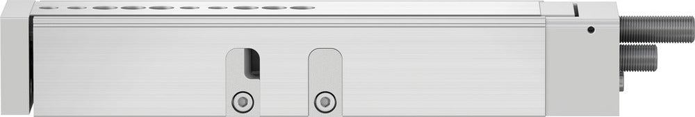 Le Mini chariot est un actionneur compact à double effet avec un diamètre de piston de 16 mm et une course de 100 mm. Il délivre une force théorique de 121 N à 6 bar lors de l'avance. Doté de bagues d'amortissement élastiques à chaque extrémité avec des butées fixes, ce chariot assure un contrôle précis du mouvement. Le guidage à billes offre une grande capacité de charge et une précision de positionnement, le rendant adapté aux applications nécessitant un mouvement linéaire précis. Compatible avec des capteurs de proximité pour la détection de position, cet actionneur offre une polyvalence dans diverses configurations d'automatisation industrielle.