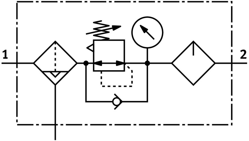 Cette unité de conditionnement combine un filtre régulateur avec manomètre et un lubrifiant à brouillard d'huile standard proportionnel. Elle dispose d'une connexion pneumatique G3/4 et d'un débit nominal élevé de 8500 l/min. L'unité offre une régulation de pression précise entre 0.5 et 7 bar, garantissant un fonctionnement stable et fiable. Avec un grade de filtration de 40 µm, elle élimine efficacement les contaminants de l'air comprimé, protégeant ainsi l'équipement en aval et maintenant l'efficacité du système.