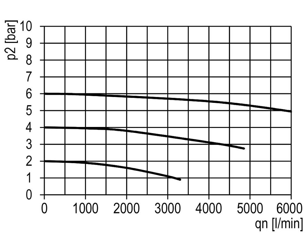 Le filtre élimine l'eau, la saleté et les autres particules nocives de plus de 5 microns. Le filtre élimine l'eau, la saleté et les autres particules nocives pour votre système d'air. Ce modèle est doté de ports G 3/4 pouce. Le débit maximal est de 5850 l/min. Veuillez noter que le débit maximal seul ne fournit pas suffisamment d'informations pour un dimensionnement correct. Utilisez la courbe de débit pour déterminer si la chute de pression (droop) dans votre plage de débit prévue est acceptable. La courbe de débit montre le débit pour une pression d'entrée définie avec plusieurs pressions de sortie. Pour chaque pression de sortie, on peut voir comment la pression change avec l'augmentation du débit. Il est recommandé d'utiliser l'appareil dans la zone plate de la courbe, et non au début ou à la fin de la courbe.