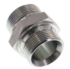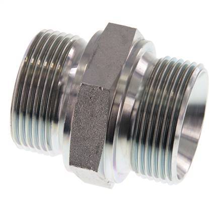Ce mamelon double en acier est conçu avec un filetage mâle à mâle. Le raccord 1 a un filetage mâle G 1 1/4 pouce. Le raccord 2 a un filetage mâle G 1 1/4 pouce. Pression maximale de 315 bars (4569 psi). Il présente un cône de 60° à l'intérieur des filets mâles.