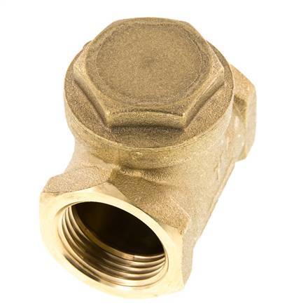 Vanne à clapet à battant G 1 pouce avec filetage femelle en laiton et joint métallique. La pression de service maximale est de 12 bar (174 psi). La vanne ne peut être utilisée que pour des médias liquides. En raison de la fermeture par gravité, elle est uniquement adaptée à une installation horizontale. Les vannes à clapet à battant offrent un chemin d'écoulement dégagé lorsqu'elles sont complètement ouvertes et permettent un débit plus élevé. La vanne est adaptée à des températures de fonctionnement comprises entre 0 et 90 °C (32 et 194 °F).
