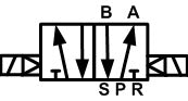 Une vanne à 5/2 voies a cinq orifices et deux etats. Deux orifices (A et B) sont relies à un composant contrôle, par exemple un verin à double effet. Un port est utilise pour fournir de l'air sous pression (port P), les deux autres ports sont des echappements (ports S et R) et sont connectes respectivement aux ports B et A. En changeant d'etat, soit le port A est pressurise et le port B ventile, soit le port A est ventile et le port B pressurise. Si le distributeur est utilise pour commander un verin à double effet, un etat du distributeur est utilise pour deplacer le verin dans une direction, et l'autre etat est utilise pour deplacer le verin dans la direction opposee.Ce distributeur est à simple effet, ce qui signifie que le distributeur est commande par un solenoïde et revient en position de repos grâce à un ressort. Si le solenoïde n'est pas active, la vanne revient en position de repos (quadrant droit).
