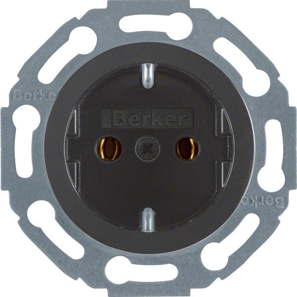 Cette prise de courant de la série 1930 de Hager Berker est équipée d'une terre de protection. La prise doit être terminée par un cadre de recouvrement approprié. De plus, la prise de courant Hager Berker 1930 est de couleur noire brillante.
