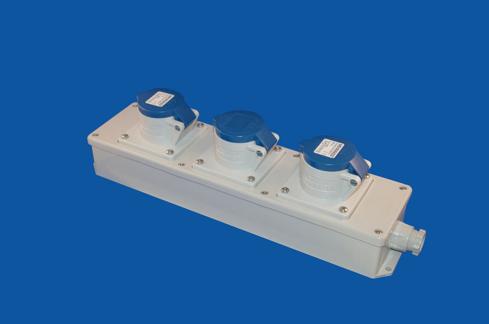 Hateha MVD cee socket combination, gris, (LxPxH) 386x97x104mm, CEE socket-16A 3x16A3p230V, Degré de protection (IP) IP44, alimentation/connexion option 1 ligne (branchée), boîtier plastique, raccordement au réseau version autre, manipulation portable.