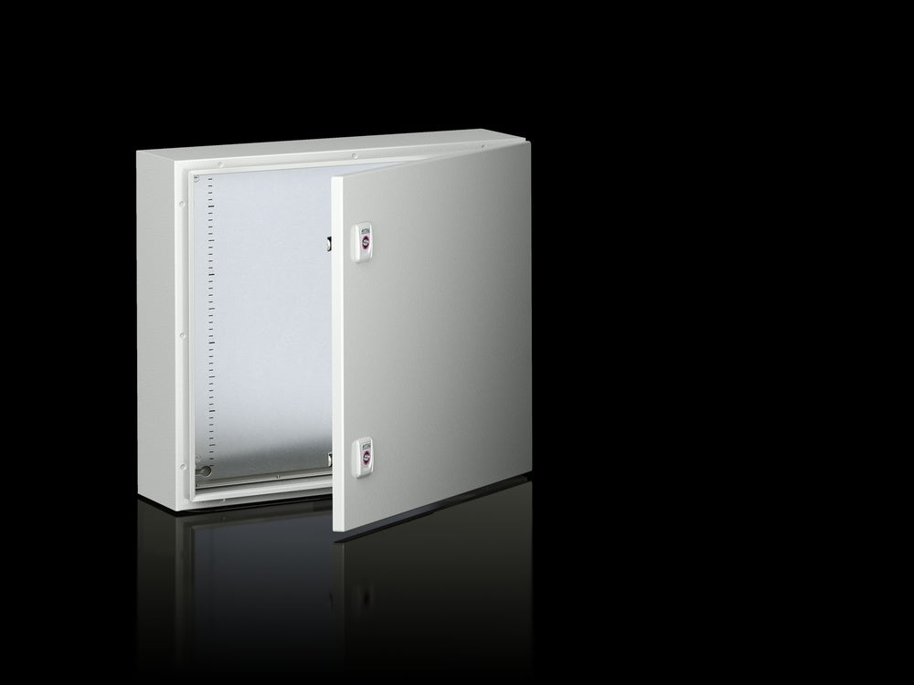 Kit d'accessoires de matériel de montage spécialisé, conçu spécifiquement pour les enceintes en acier laminé Rittal AX avec configuration à porte unique. Compatible avec les enceintes disposant d'une plaque de passage de câble et de mécanismes de verrouillage à levier simple ou double. Composants d'installation essentiels emballés en tant qu'ensemble complet pour l'assemblage professionnel des enceintes.