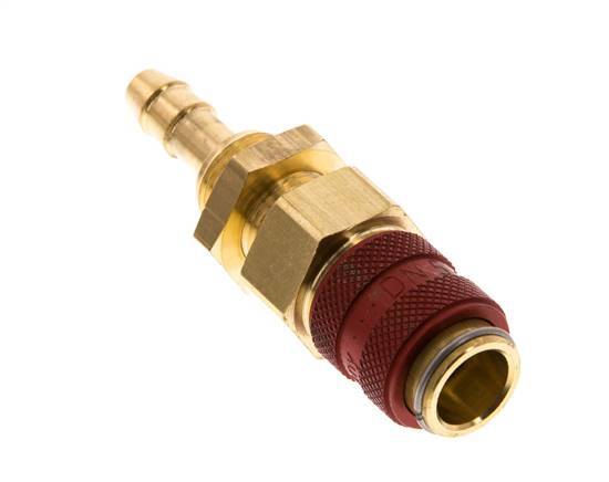 Laiton DN 5 Red Air Coupling Socket 6 mm Hose Pillar Bulkhead