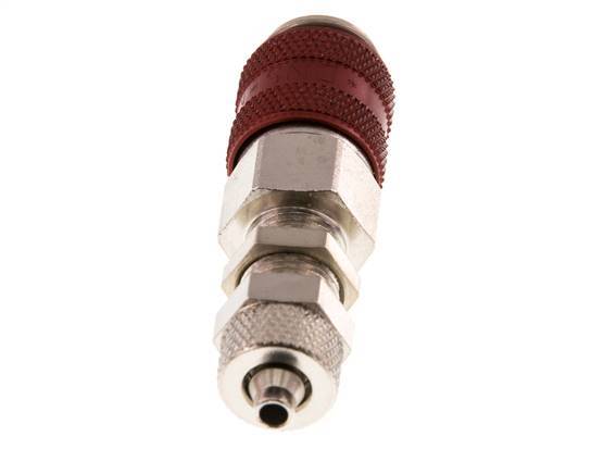 Laiton nickelé DN 5 Red Air Coupling Socket 4x6 mm Union Nut Bulkhead