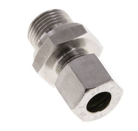 Ce raccord droit à vis en acier inoxydable est conçu avec des filets mâles et un raccord à bague coupante. Le raccord 2 est une bague coupante de 10 mm. Convient pour des températures de -60 à 400 °C (-76 à 752 °F). Pression maximale de 315 bars (4569 psi). Conçu pour une classe de charge L (légère). Il est fabriqué conformément à la norme DIN EN ISO 8434-1 (DIN 2353).