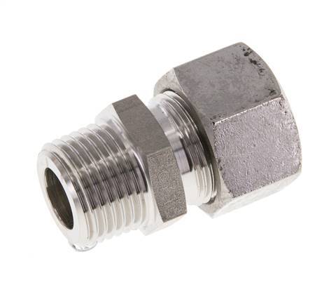 Ce raccord droit à visser est conçu avec des filets mâles et un raccord à bague de compression. Le raccord 2 est une bague de compression de 10 mm. Il s'agit d'un raccord droit. Il est fabriqué en acier inoxydable (1.4571). Il convient aux milieux situés dans une plage de températures allant de -60 °C à 400 °C (-76 °F à 752 °F). À 20 °C (68 °F), il peut supporter une pression maximale de 315 bars (4569 psi). Selon la norme DIN 2353, il est classé dans la catégorie de charge L (légère). Il est fabriqué conformément à la norme DIN EN ISO 8434-1 (DIN 2353). Ils sont conçus en trois parties.
