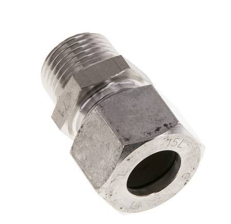 Ce raccord droit à visser en acier inoxydable est conçu avec des filets mâles et un raccord à bague de compression. Le raccord 2 est une bague de compression de 10 mm. Convient pour des températures de -60 à 400 °C (-76 à 752 °F). Pression maximale de 315 bars (4569 psi). Conçu pour une classe de charge L (légère). Il est fabriqué conformément à la norme DIN EN ISO 8434-1 (DIN 2353).
