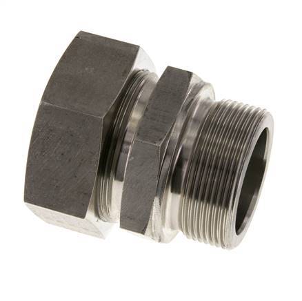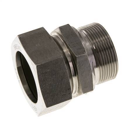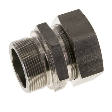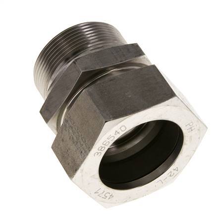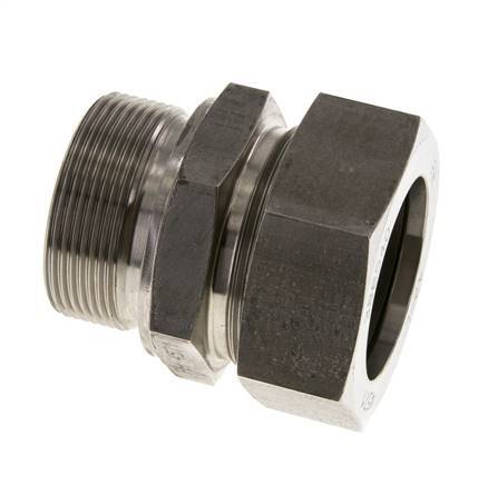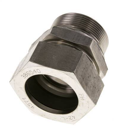 Ce raccord droit à visser est conçu avec des filets mâles et un raccord à bague coupante. Le raccord 2 est une bague coupante de 42 mm. Il s'agit d'un raccord droit. Il est fabriqué en acier inoxydable (1.4571). Il convient aux milieux situés dans une plage de températures allant de -60 °C à 400 °C (-76 °F à 752 °F). À 20 °C (68 °F), il peut supporter une pression maximale de 160 bars (2321 psi). Selon la norme DIN 2353, il est classé dans la catégorie de charge L (légère). Il est fabriqué conformément à la norme DIN EN ISO 8434-1 (DIN 2353). Ils sont conçus en trois parties.