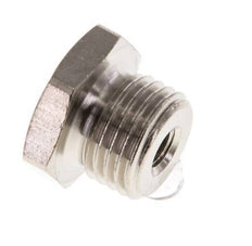 Ce mamelon réducteur est conçu avec des filetages mâle et femelle. Le raccord 1 a un filetage femelle M 5. Le raccord 2 a un filetage mâle G 1/4 pouce. Il s'agit d'un raccord droit. Il est fabriqué en laiton et est nickelé pour protéger la surface. À 20 °C (68 °F), il peut supporter une pression maximale de 16 bars (232 psi).
