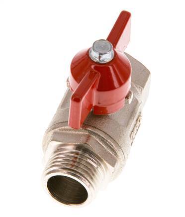 Robinet à boisseau sphérique à 2 voies de conception courte avec des orifices mâle et femelle G/G 1/2 pouce et une poignée papillon pour le contrôle du débit tout ou rien. L'alésage de la valve est de 15 mm et la pression maximale est de 50 bar ou 725 psi. Convient pour l'eau, les milieux liquides neutres, gazeux et non agressifs, les huiles minérales et l'air comprimé. La vanne est également adaptée au vide (max. -0,9 bar ou -13 psi). Convient pour des températures de -20 à 150 °C (-4 à 302 °F). Boîtier en laiton nickelé, bille en laiton chromé et joints en PTFE/FKM.