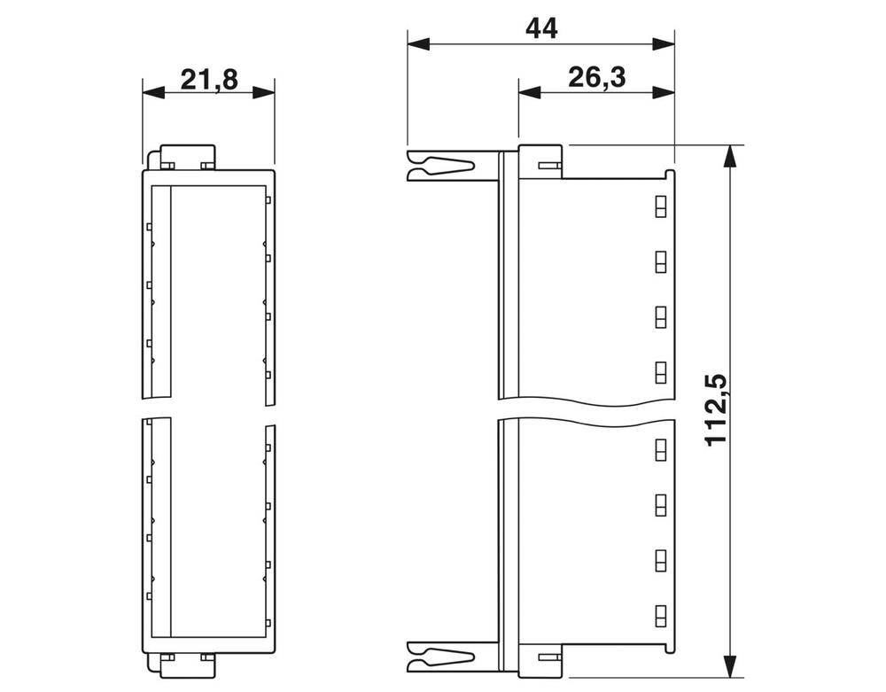 Magasin avec rail de mise à la terre pour recevoir jusqu'à 10 fiches de protection LSA-PLUS (COMTRAB CTM), à inserer dans le CT-TERMIBLOCK ou la barre