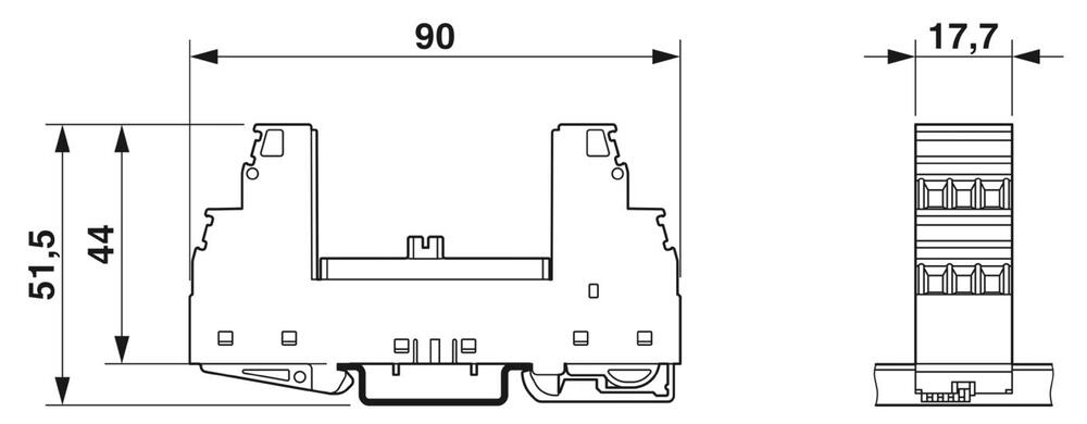 Elément de base pour fiche de protection PT avec circuit de protection pour un circuit de signal flottant à 2 fils. Montage sur NS 35/7.5 et NS 35/15, largeur du boîtier = 17.5 mm.