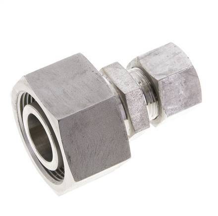 Ce raccord droit à visser en acier inoxydable 1.4571 est conçu avec des orifices de raccordement pour bague coupante et tube pivotant. Le raccord 1 est une bague coupante de 16 mm avec un ecrou-raccord M24x1,5. Le raccord 2 est equipe d'un tube pivotant de 30 mm. La pression maximale est de 400 bars (5800 psi). Le raccord est adapte à des temperatures allant de -60 à 400 °C (-76 à 752 °F). Il est fabrique conformement à la norme DIN EN ISO 8434-1 (DIN 2353).