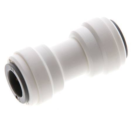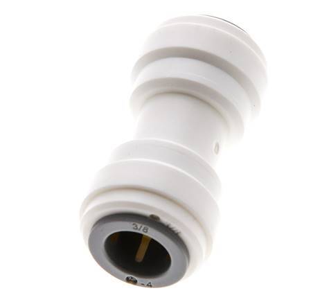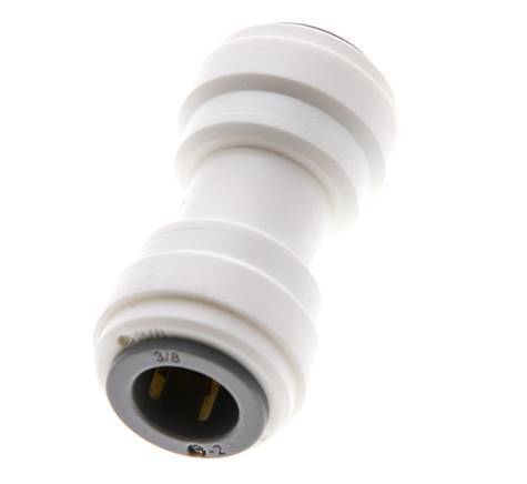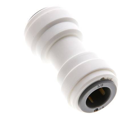 Il s'agit d'un raccord push-in droit à 2 connexions. Les raccords Push-in sont idéaux pour créer des connexions rapides et fiables pour les tuyaux pneumatiques. Les deux connexions push-in ont une taille de 3/8 pouce (9,52 mm). Le corps est en POM. Les ports de connexion sont fabriqués en POM. Le matériau du joint est l'EPDM. La plage de pression de fonctionnement est de -0,95 à 11 bars (-14 à 160 psi), ce qui permet de l'utiliser pour les vides. Le raccord est adapté à des températures comprises entre 0 et 65 °C (32 et 149 °F). Le raccord instantané s'installe facilement en poussant le tube pneumatique contre l'anneau de déclenchement du raccord jusqu'à ce qu'il s'arrête, et la griffe interne le maintient en place. Il est facile à désinstaller en poussant la bague de déclenchement vers l'intérieur du raccord et en tirant le tube vers l'arrière.