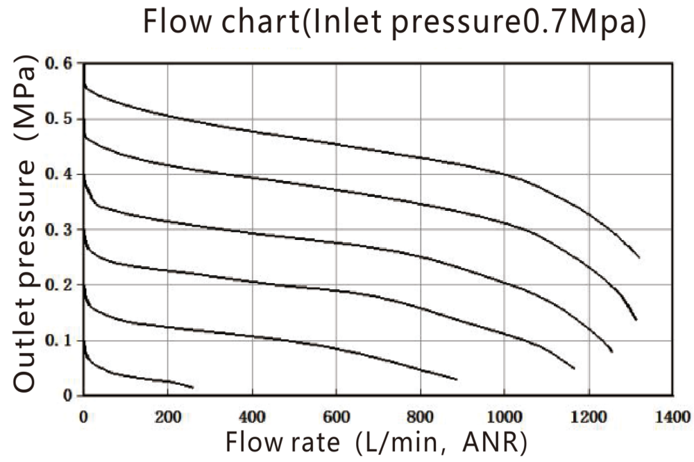 La pression d'entrée maximale est de 10,0 bar (145 psi) et la plage de température est comprise entre -5 et 60 °C (23 et 140 °F). Une soupape de surpression intégrée est prévue du côté de la sortie lorsque la pression de consigne est dépassée. Le matériau du boîtier est en aluminium. Il dispose d'un support de fixation pour le fixer à un mur ou à votre machine.