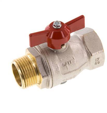 Robinet à boisseau sphérique à 2 voies en laiton, mâle à femelle R/Rp 1 pouce, avec poignée papillon