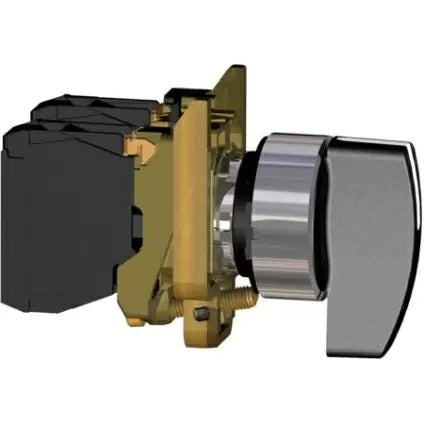 Schneider Electric Harmony Harmony XB4 sélecteur, design de l'élément de commande poignée rotative longue, bouton noir, fonction de commutation verrouillage, degré de protection (IP) IP67/IP69K, diamètre du trou 22.5mm, 1 contact à fermeture, 2 positions de commutation, raccordement électrique version borne à vis.
