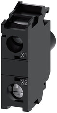 Module LED de qualité industrielle pour boutons-poussoirs et indicateurs SIRIUS ACT, fonctionnant à 24V CA/CC avec connexion à bornes à vis. Caractéristiques d'une technologie LED à haute luminosité et économe en énergie pour montage sur plaque avant. Conçu pour des environnements difficiles avec protection contre les poussières, les huiles et le nettoyage haute pression. Compatible avec les contrôleurs PROFINET, AS-Interface et IO-Link.
