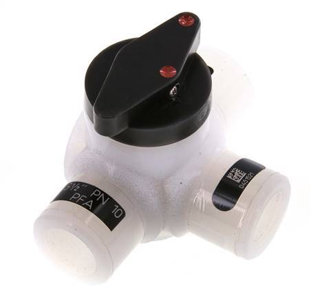 Vanne à bille 3 voies en PFA G 1/2'' FKM pour le vide