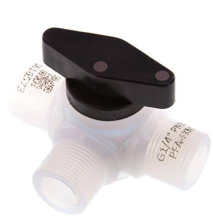 Vanne à bille 3 voies en PFA G 1/4'' FKM pour le vide