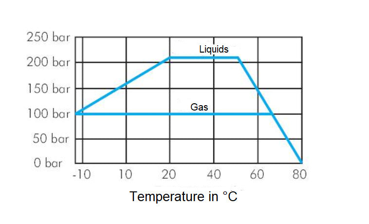 Le boîtier de la vanne est en laiton nickelé, la bille est en laiton chromé et les joints sont en PTFE/FKM. La vanne est adaptée à l'eau et à l'huile hydraulique jusqu'à une pression maximale de 210 bar ou 3046 psi et à l'air comprimé (jusqu'à 100 bar ou 1450 psi). La vanne peut être utilisée dans une plage de température allant de -10 à 80 °C (14 à 176 °F).