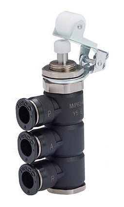 Il s'agit d'une vanne mécanique à 3 voies montée sur panneau pour le contrôle de l'air ouvert/fermé. Il s'agit d'une vanne à trois voies qui libère le système de la pression résiduelle par l'intermédiaire d'un tube d'échappement. Les trois ports sont munis de raccords instantanés de 4 mm. Les trois ports sont munis de raccords instantanés de 4 mm. Il convient pour une pression de fonctionnement maximale de 7 bars (101,5 psi). Il est équipé de joints NBR qui permettent de l'utiliser dans une plage de températures allant de 0 à 60 °C (32 à 140 °F).